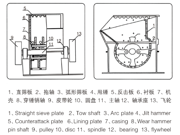 4.易損件的磨損比錘式破碎機(jī)小、金屬利用率高。